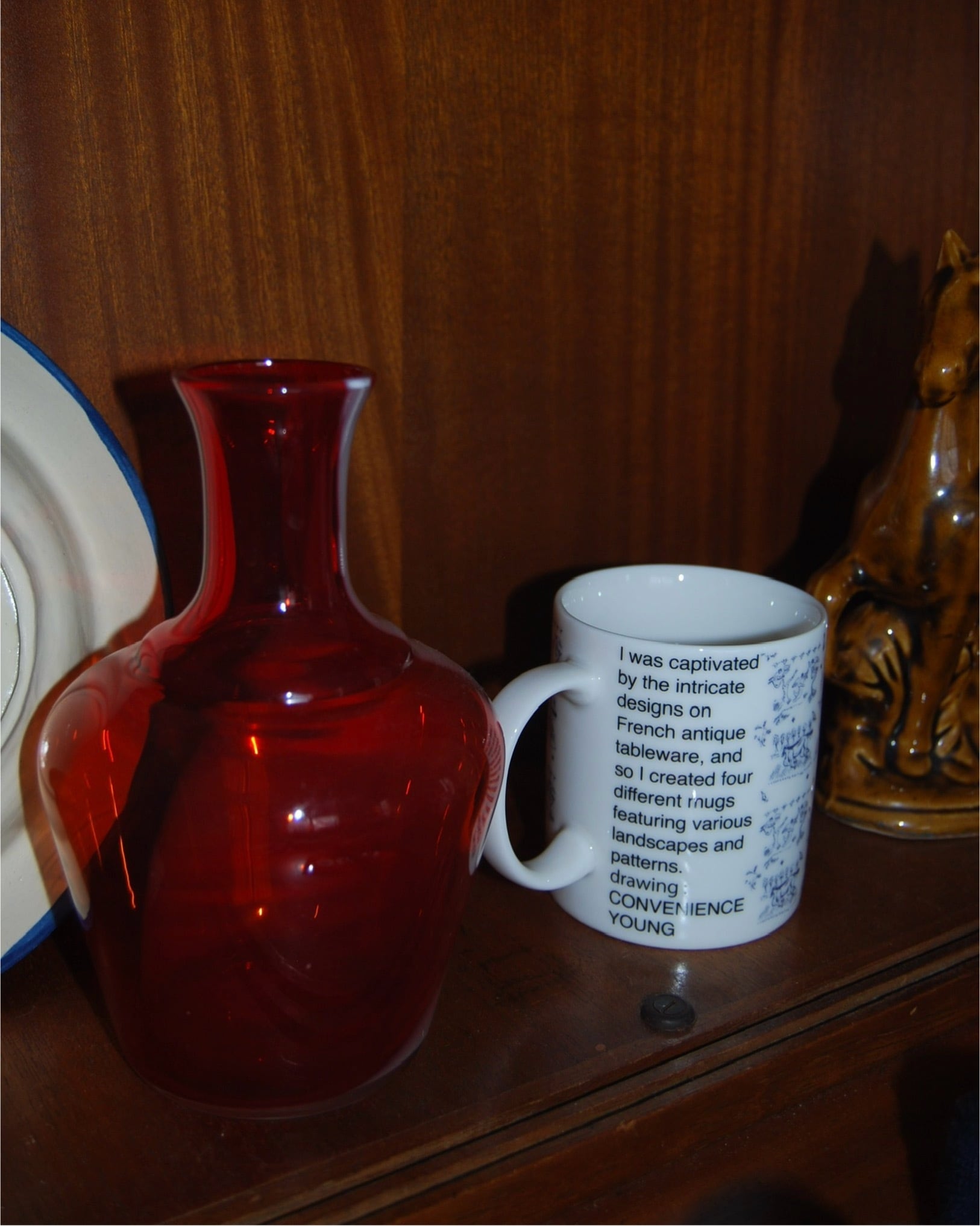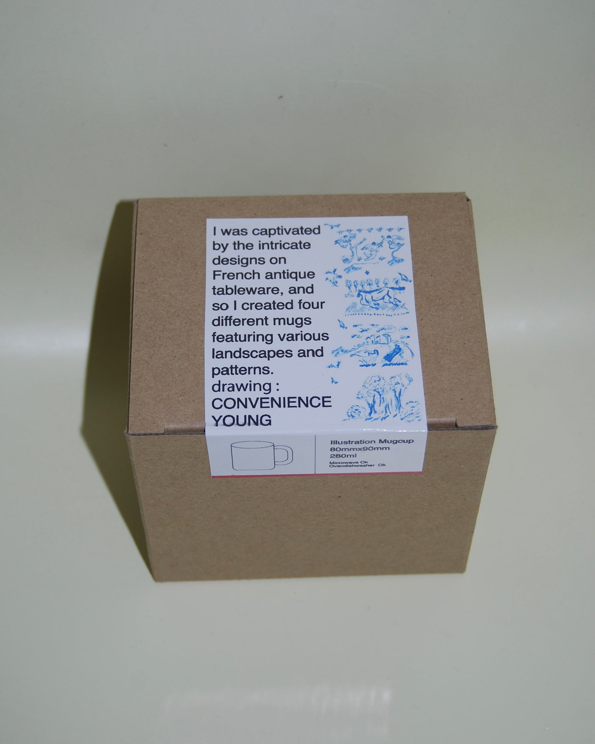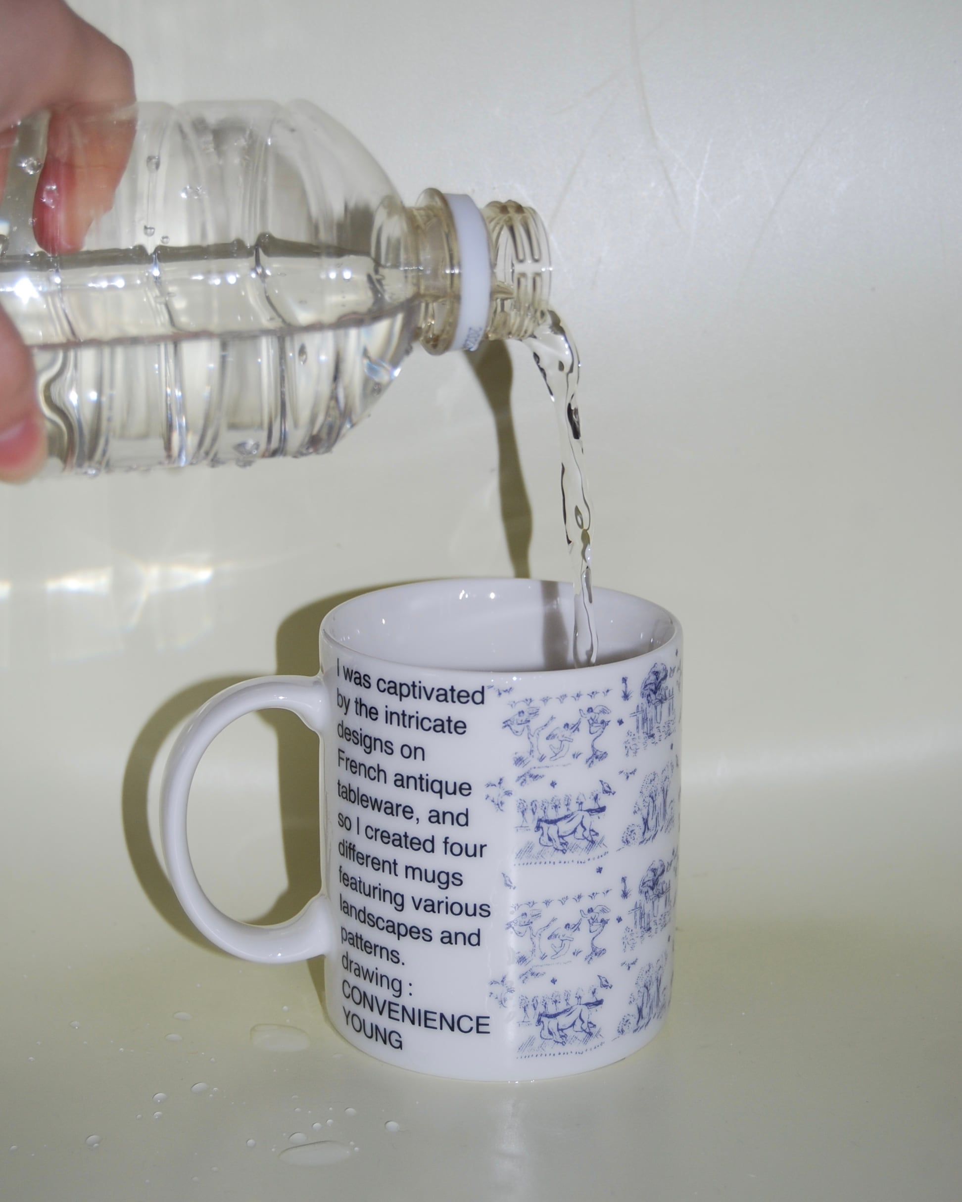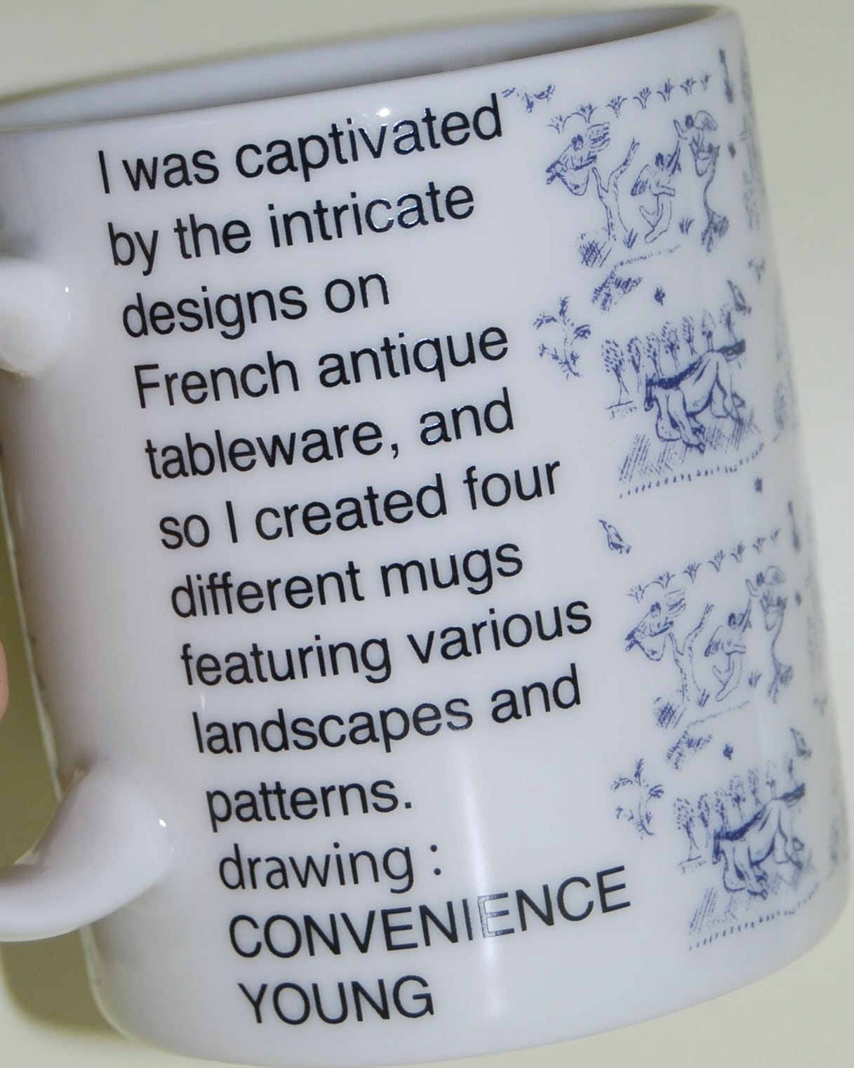 フランスのアンティーク食器の精巧なデザインに魅了され描いた風景画を総柄にしたマグカップ。