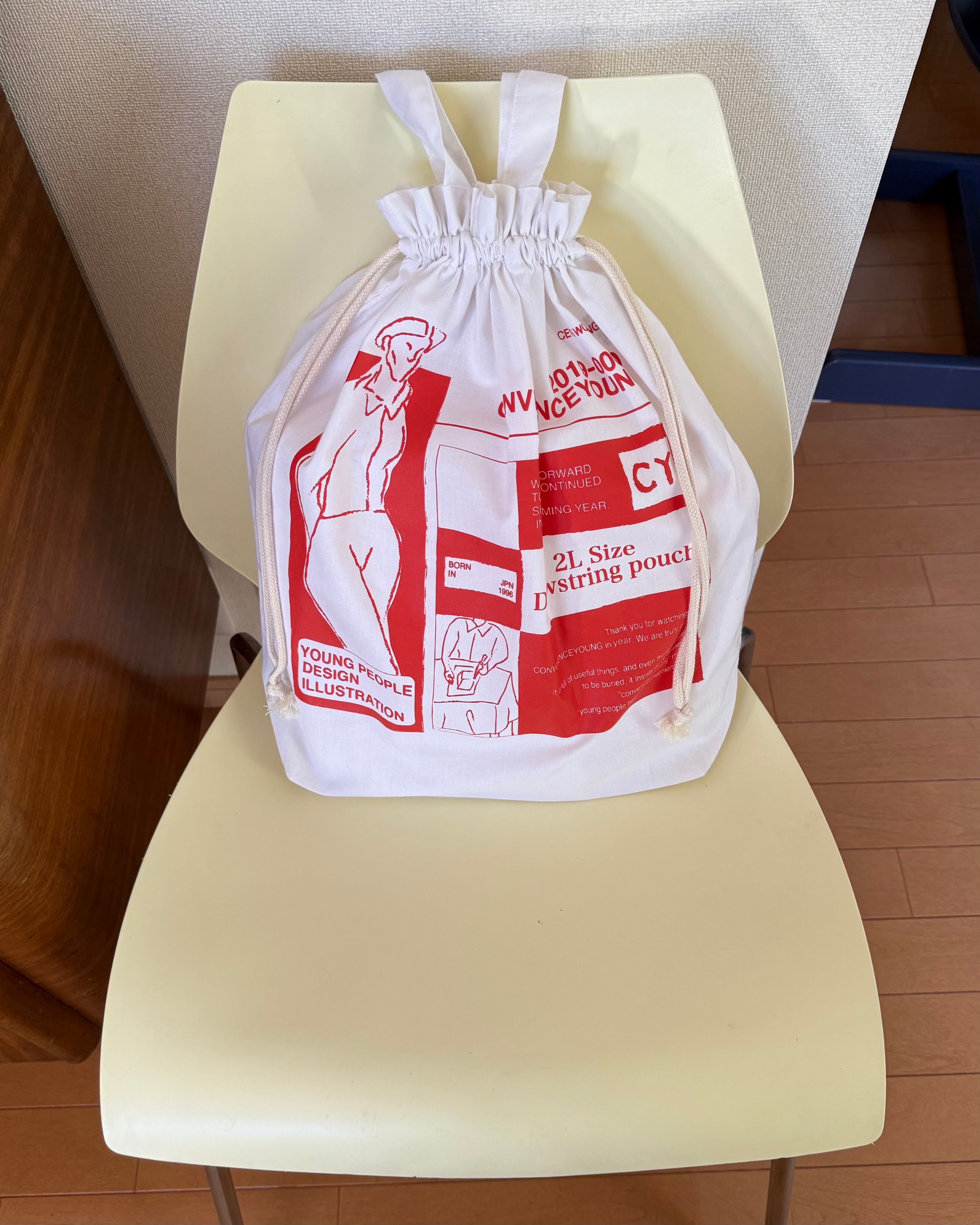 こちらのオンラインにて、税込¥22,000以上ご購入いただきました方へ、ノベルティとして大判の巾着トートバッグへお入れしてご一緒にご発送させて頂きます。
