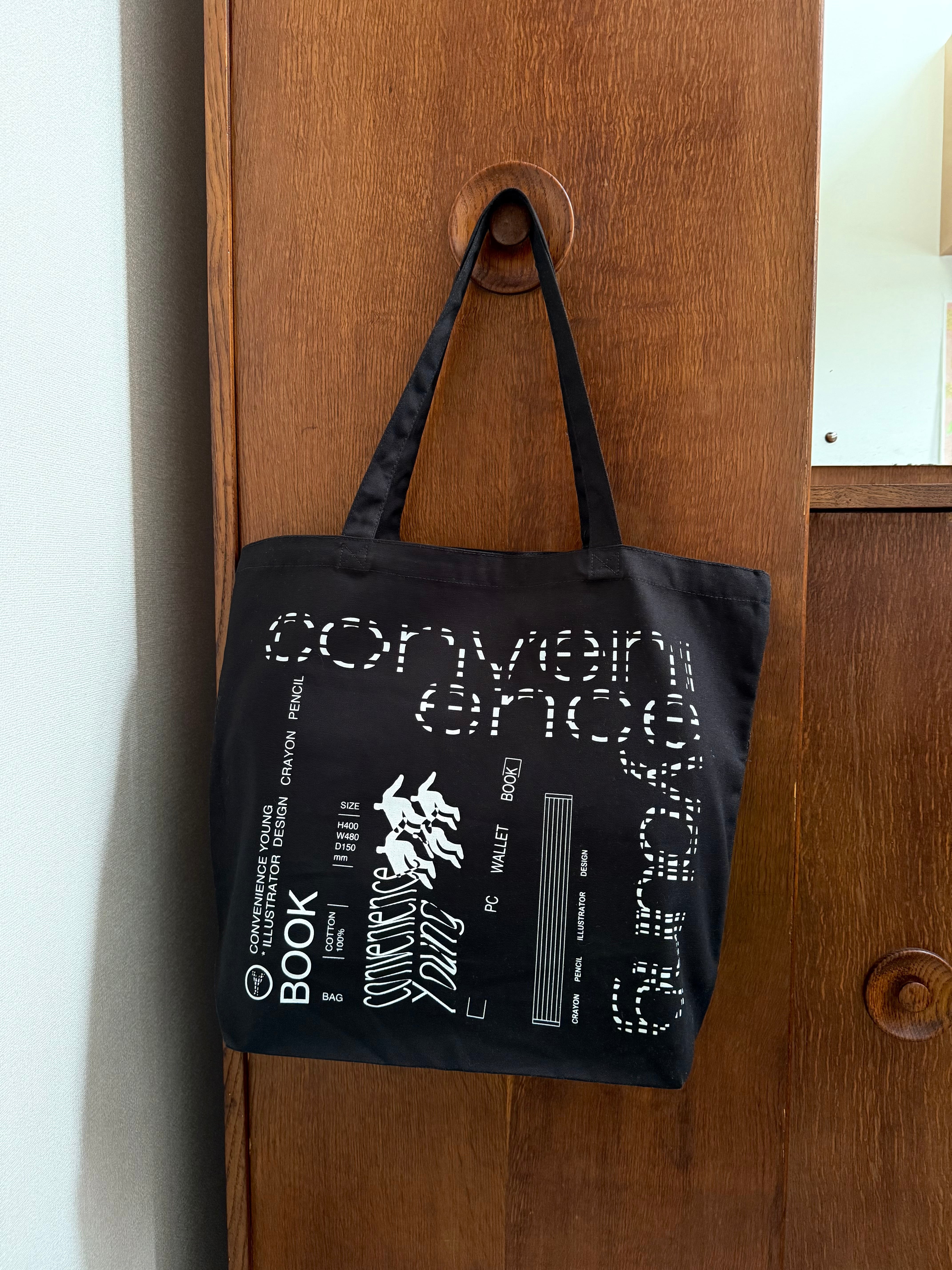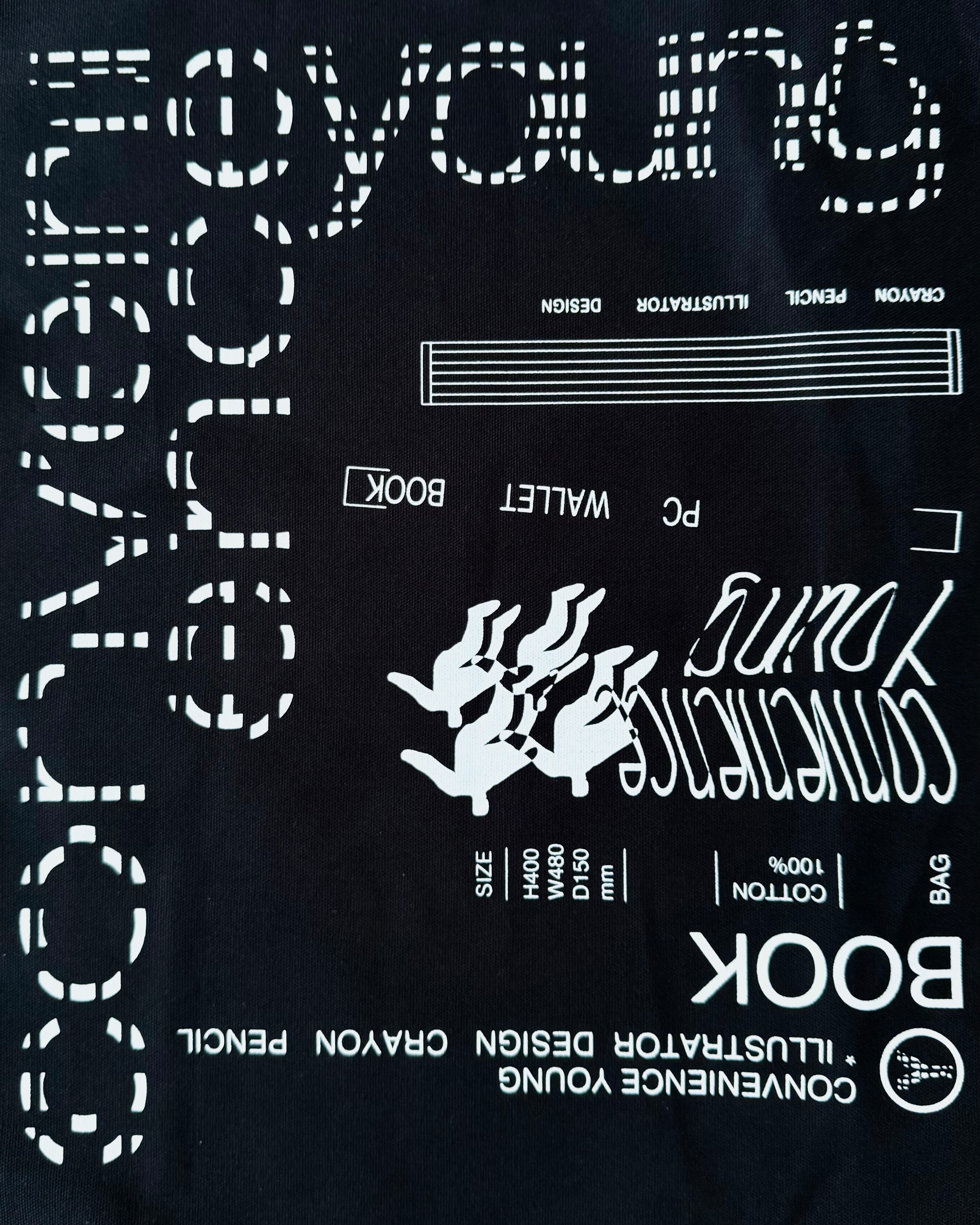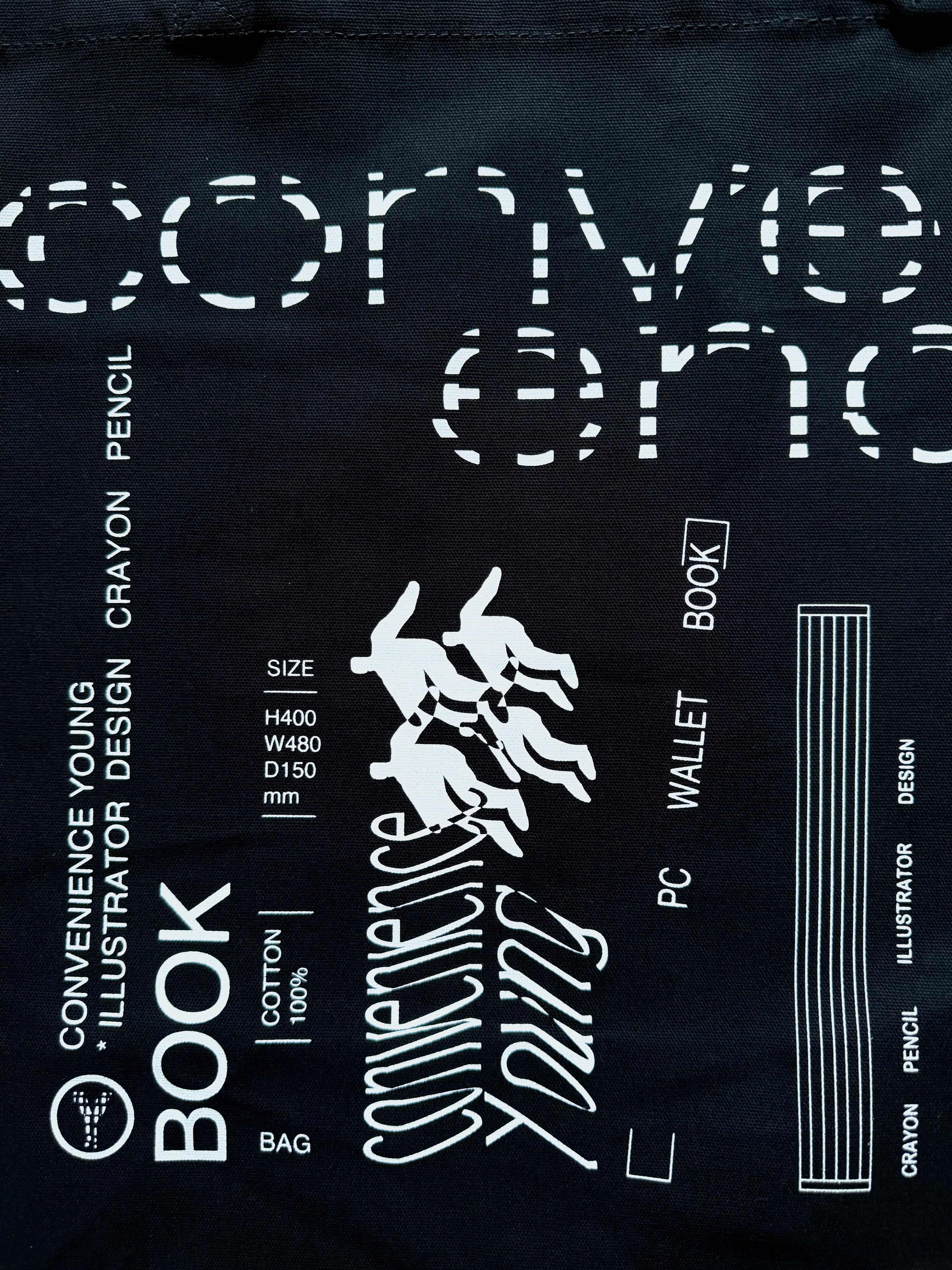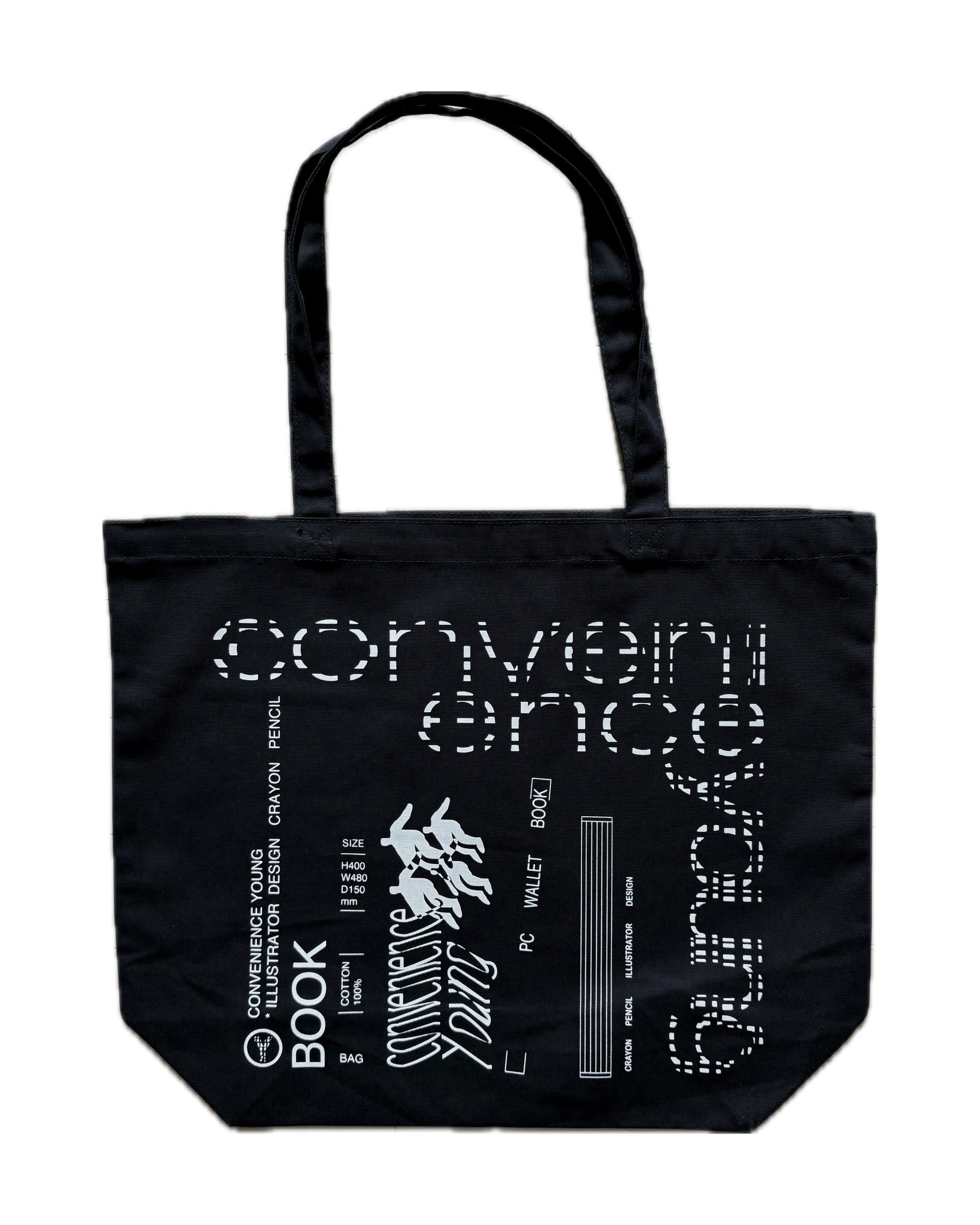 肩にもかけれて大きい頑丈なバッグを持参できたらと思い完成したBOOKSTORE TOTE BAGは、もしもCONVENIENCE YOUNGが本屋だったらをテーマにしています。2色有り。